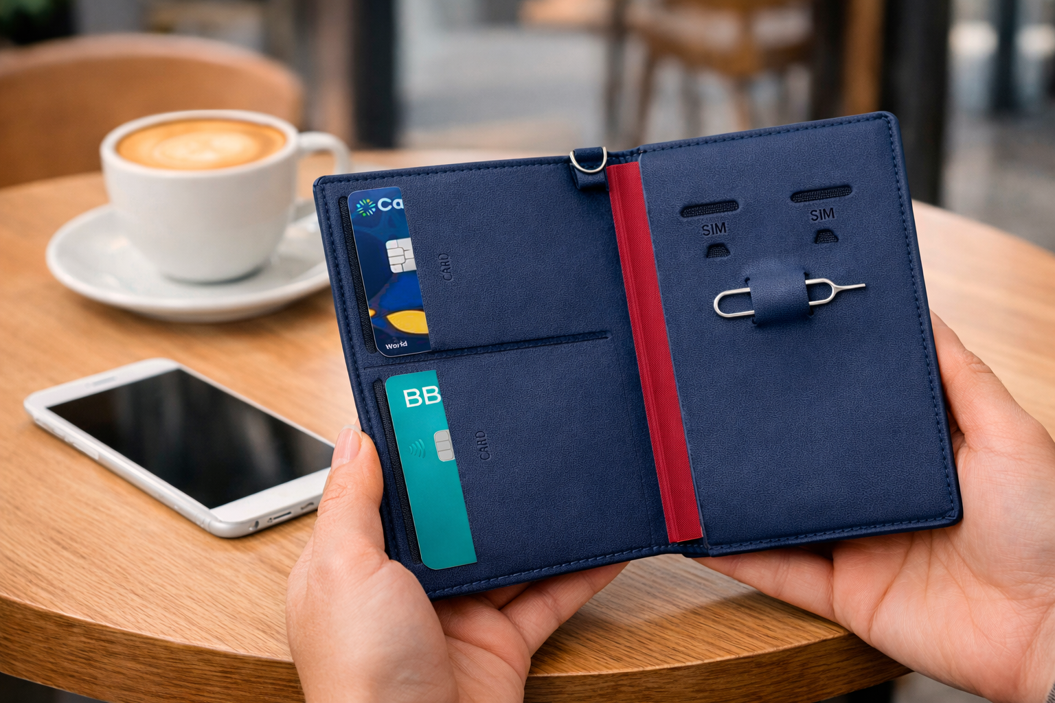 Esta billetera multifunción está diseñada para ofrecer máxima organización y seguridad en un solo accesorio. Cuenta con espacio específico para pasaporte, tarjetas bancarias, tarjetas SIM, tarjetas de memoria microSD y extractor de SIM, ideal para viajeros y usuarios que necesitan cambiar de tarjeta con frecuencia.