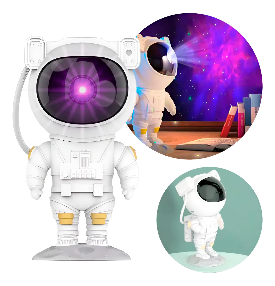 Convierte cualquier habitación en un cielo estrellado con nuestra lámpara proyector en forma de astronauta. Ideal para dormitorios, salas de estar o espacios de relajación, ofrece una experiencia inmersiva que combina diseño decorativo con tecnología de iluminación avanzada.